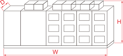 | Model | VFD-vermogen ( kW ) | Capaciteit ( kVA ) | Uitgangsstroom ( EEN ) | VFD-grootte ( D*D*H mm ) | Gewicht ( T ) |