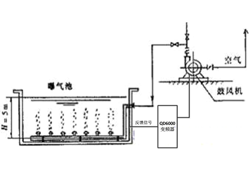 | 04 Systeemintroductie: In dit systeem wordt de hoofdmotor van de 110 kW beluchtingsventilator voor rioolwaterzuivering aangedreven door de RVE32 110 kW frequentieomvormer, en wordt de automatische regeling met gesloten lus gerealiseerd op basis van het feedbacksignaal van de sensor voor opgeloste zuurstof. | | ||||||||||||||||||